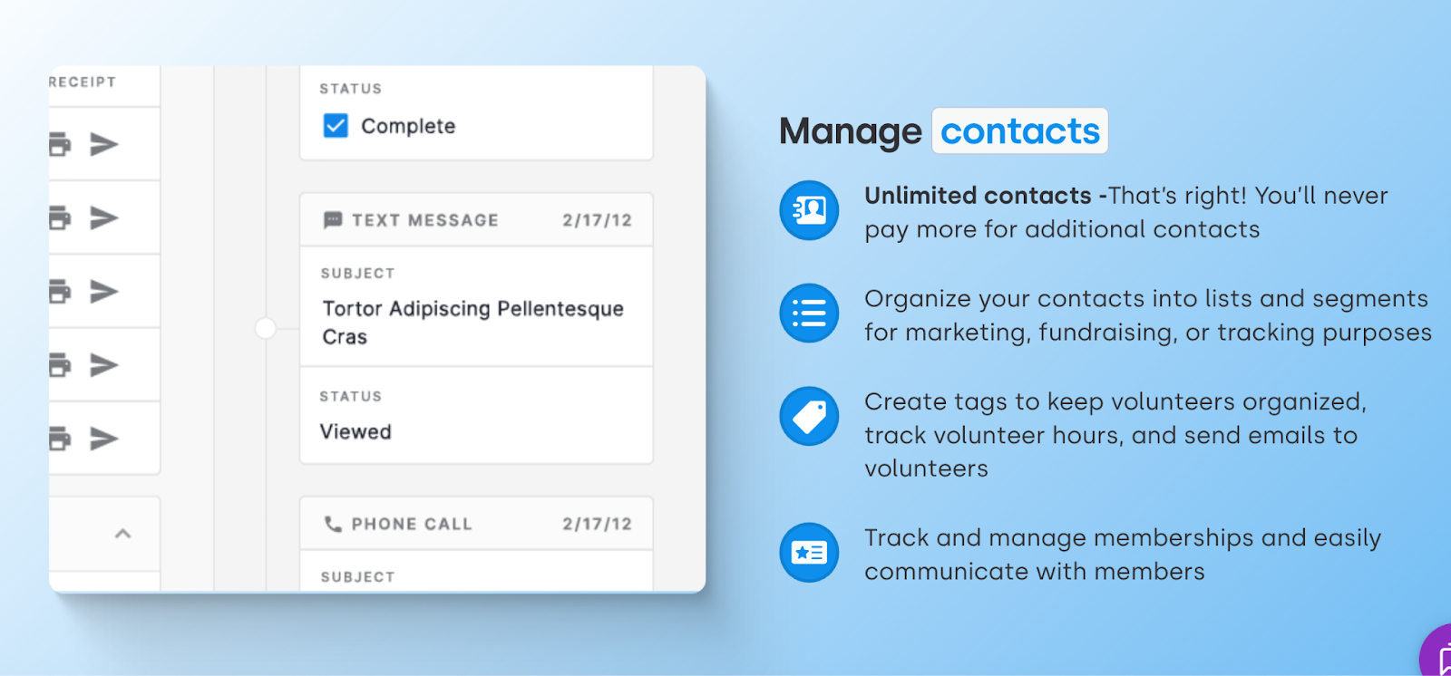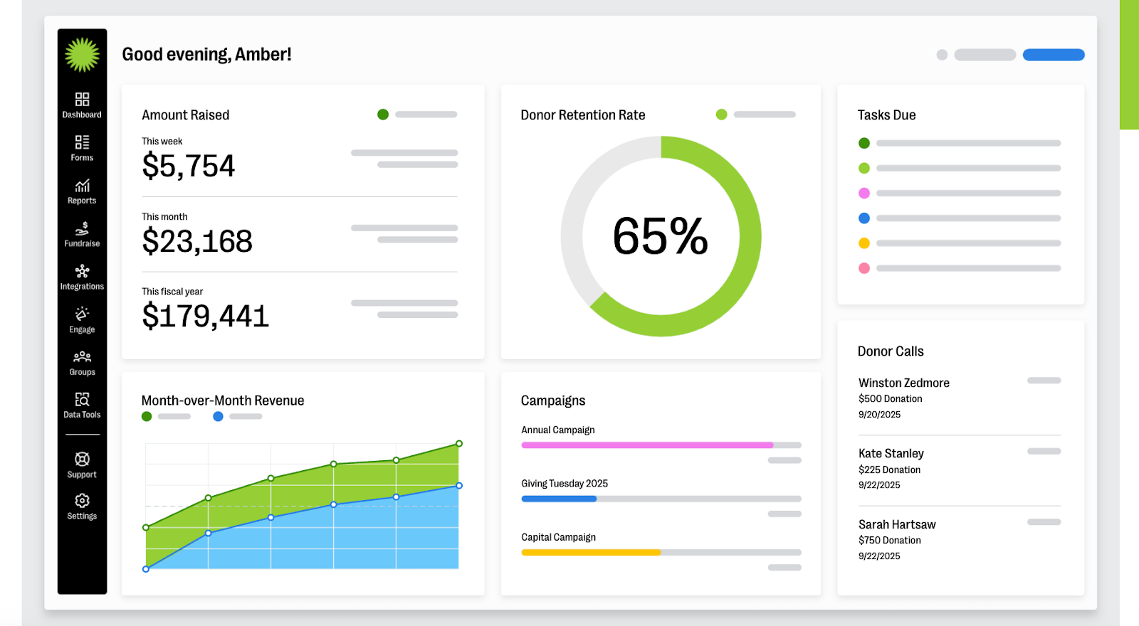 - Raise more money: The right software surfaces which supporters might be ready for a major gift ask, identifies lapsed donors worth re-engaging, and makes it simple to build recurring giving programs